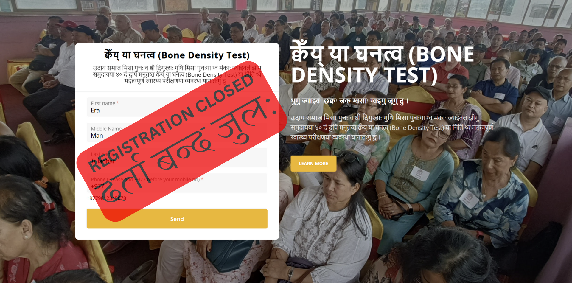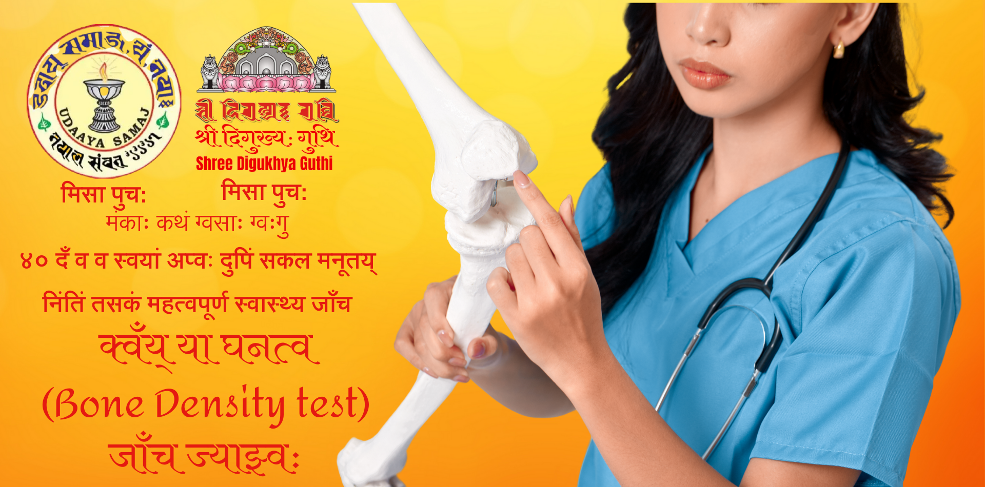 उदाय समाज मिसा पुचः व श्री दिगुख्यः गुथि मिसा पुचःया थ्व मंकाः ज्याझ्वलं झीगु समुदायया ४० दं दुपिं मनूतय्त क्वँय् या घनत्व (Bone Density Test) या निंतिं थ्व महत्वपूर्ण स्वास्थ्य परीक्षणया व्यवस्था यानातःगु दु ।