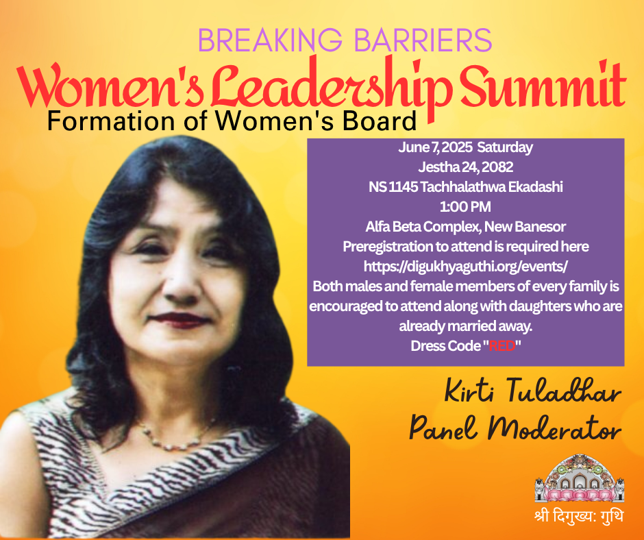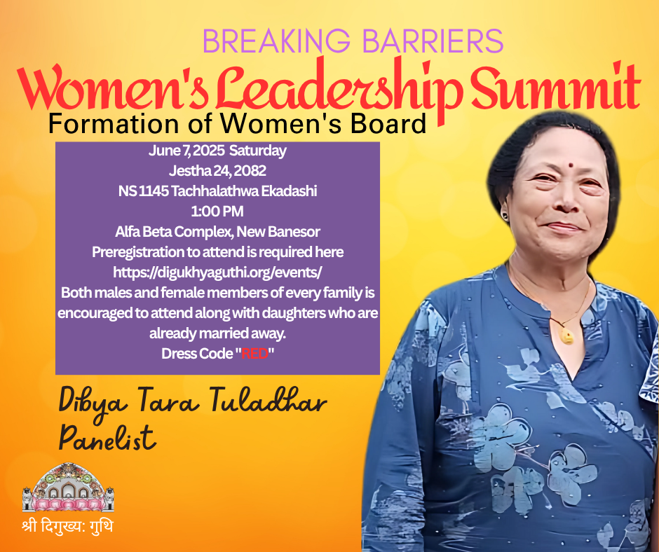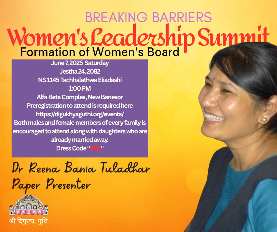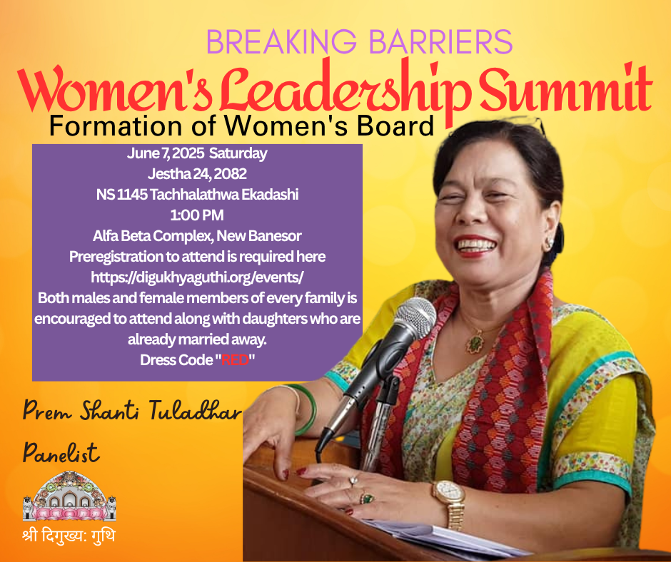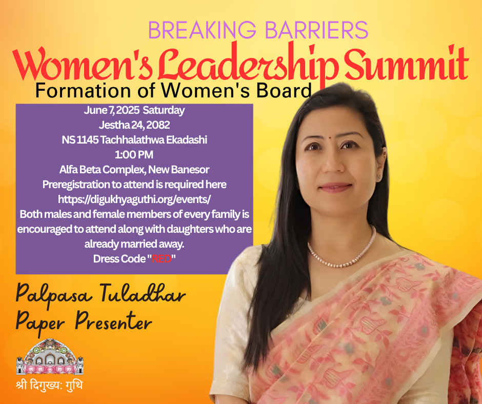 Women's leadership is an integral force in shaping societies, fostering progress, and ensuring inclusive decision-making. Despite advancements, women continue to face systemic and social barriers to leadership. The Breaking Barriers: Women's Leadership Summit, organized by Shree Digukhya Guthi, seeks to create a dynamic platform for dialogue, empowerment, and collective action to strengthen women's leadership and participation in governance, business, and community development.